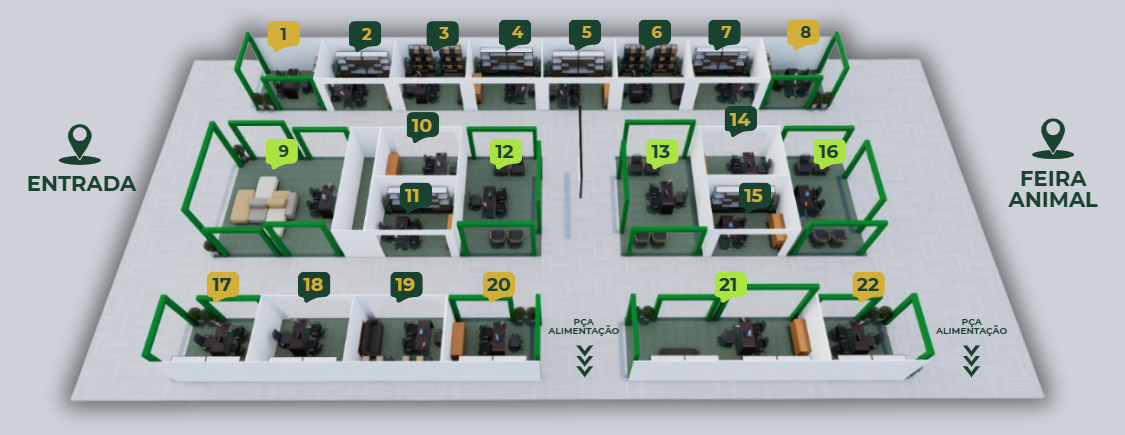 Ambientes planejados para exposição de marcas, apresentação de soluções, ativações e relacionamento direto com o público, proporcionando experiências memoráveis e alto engajamento.